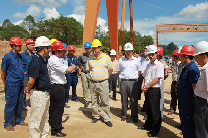 2011年8月3日下午,區交通運輸廳廳長潘巍一行蒞臨由廣西壯族自治區公路橋梁工程總公司承建的靖那1標施工現場視察工作。