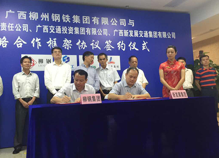 朱堅(jiān)和董事長(zhǎng)在講話中指出,廣西新發(fā)展交通集團(tuán)是區(qū)內(nèi)資質(zhì)齊全、產(chǎn)業(yè)鏈完備的大型交通基礎(chǔ)設(shè)施企業(yè),主要從事公路、橋梁、港口、碼頭、航道、隧道、市政等基礎(chǔ)設(shè)施的投資建設(shè)、勘察設(shè)計(jì)、施工等業(yè)務(wù)。廣西新發(fā)展交通集團(tuán)與柳鋼具有廣泛的共同利益和良好的合作基礎(chǔ),在前期的合作中也取得了一系列的合作成果,希望雙方今后積極發(fā)揮自身優(yōu)勢(shì),強(qiáng)強(qiáng)聯(lián)合、攜手共進(jìn),打造利益共同體、責(zé)任共同體、命運(yùn)共同體,為促進(jìn)全區(qū)經(jīng)濟(jì)穩(wěn)增長(zhǎng)作出新的更大貢獻(xiàn)。