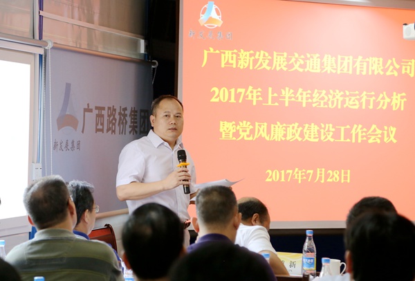 7月28日,集團公司在南寧市柳南高改快3標項目召開2017年上半年經濟運行分析暨黨風廉政建設工作會議。會議傳達了交通運輸部2017年上半年工作總結和下半年工作會議精神,全區縣域經濟發展大會暨年中工作會議精神以及自治區國資委2017年上半年經濟運行分析、安全生產暨“1+N監督閉環”工作推進會議精神,對集團公司上半年經濟運行情況和黨風廉政建設工作情況進行了認真總結與分析,研究部署了下一階段工作任務。會議由集團公司黨委副書記、副董事長、總經理唐咸秋主持。