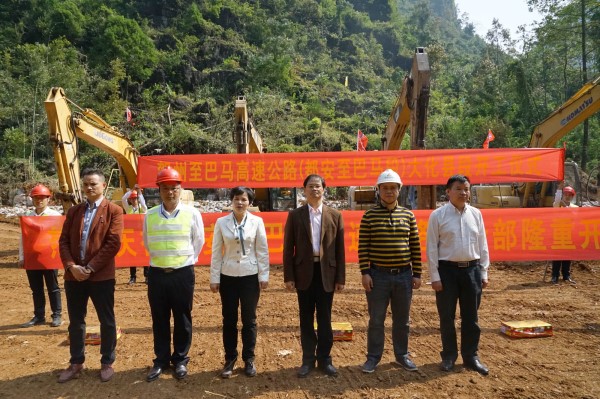 10月30日,新恒通公司賀巴高速(都安至巴馬段)(簡稱“都巴高速”)大化縣段舉行實質性開工儀式,紅水河大橋、新依隧道、發瑞隧道、廷心隧道等控制性工程實現實質性開工。