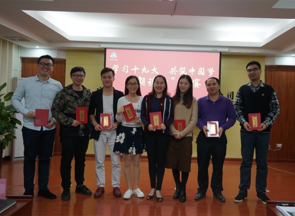 比賽產生一等獎一名,二等獎兩名,三等獎五名,公司副總經理、指揮部指揮長、黨支部書記陸原恩為獲獎者頒發了榮譽證書和黨的十九大相關學習書籍。