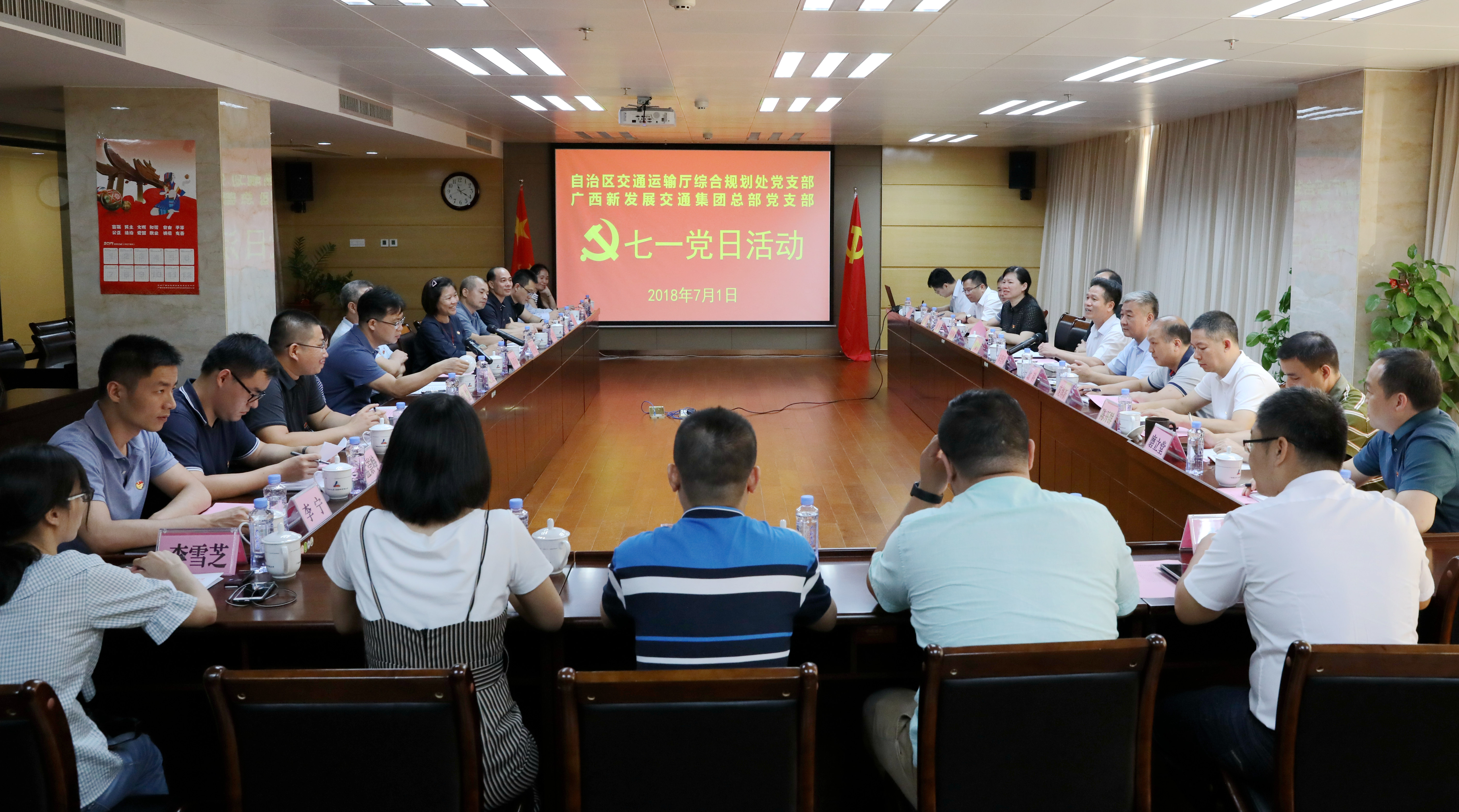 雙方黨員通過交流發(fā)言,共同回顧了中國共產(chǎn)黨成立97年來艱苦卓絕的奮斗歷史和團結帶領全國各族人民所取得舉世矚目的發(fā)展成就;共同感受到了我們比歷史上任何時期都更接近中華民族偉大復興的目標;共同認識到,廣西交通人作為習近平總書記對廣西發(fā)展提出“三大定位”目標的堅定實踐者和開拓者,作為先行官,必須進一步強化責任感和使命感。活動中,雙方黨組織重點就縣縣通高速公路、路網(wǎng)項目、智慧交通項目等有關事項進行了深入探討。