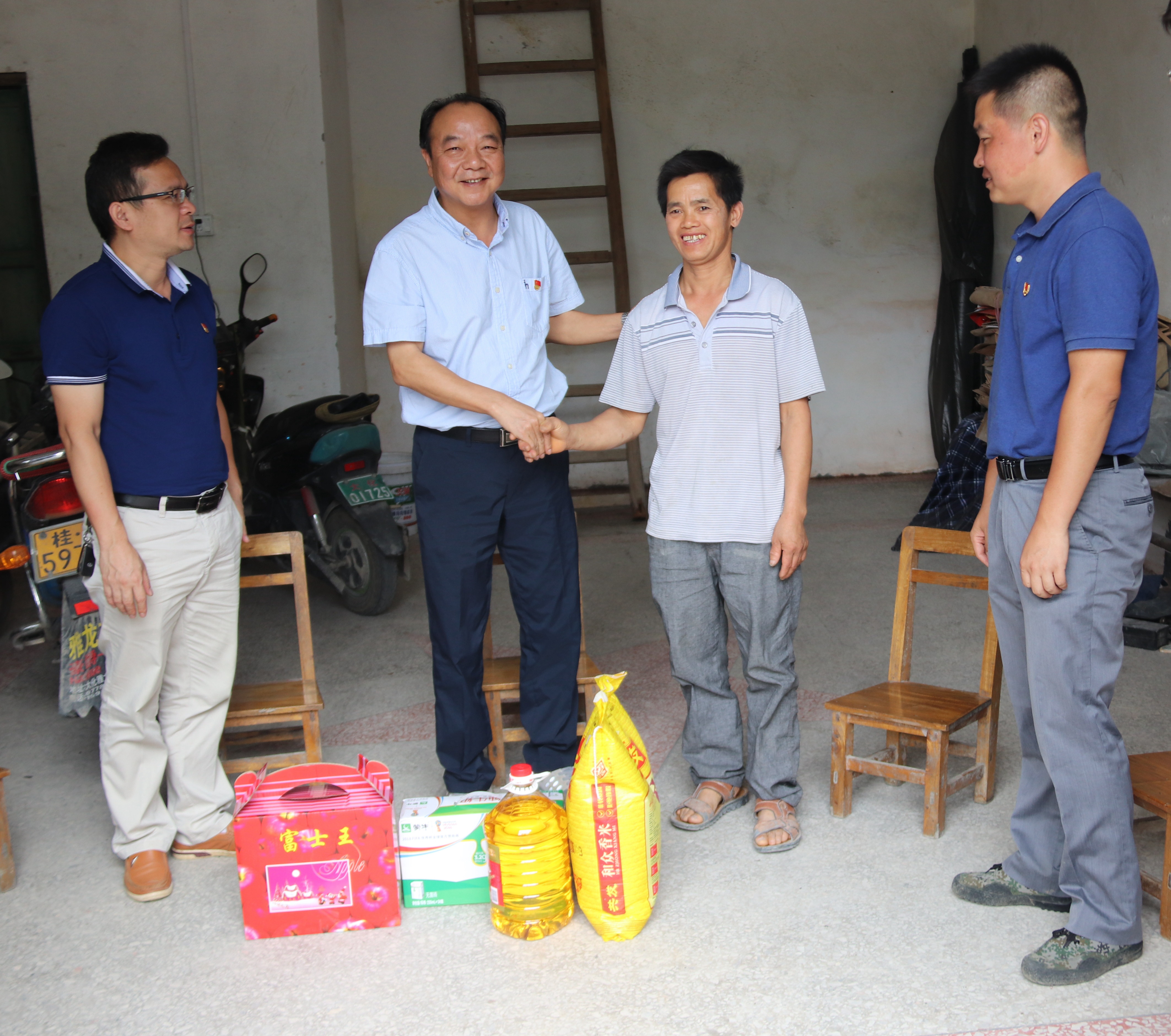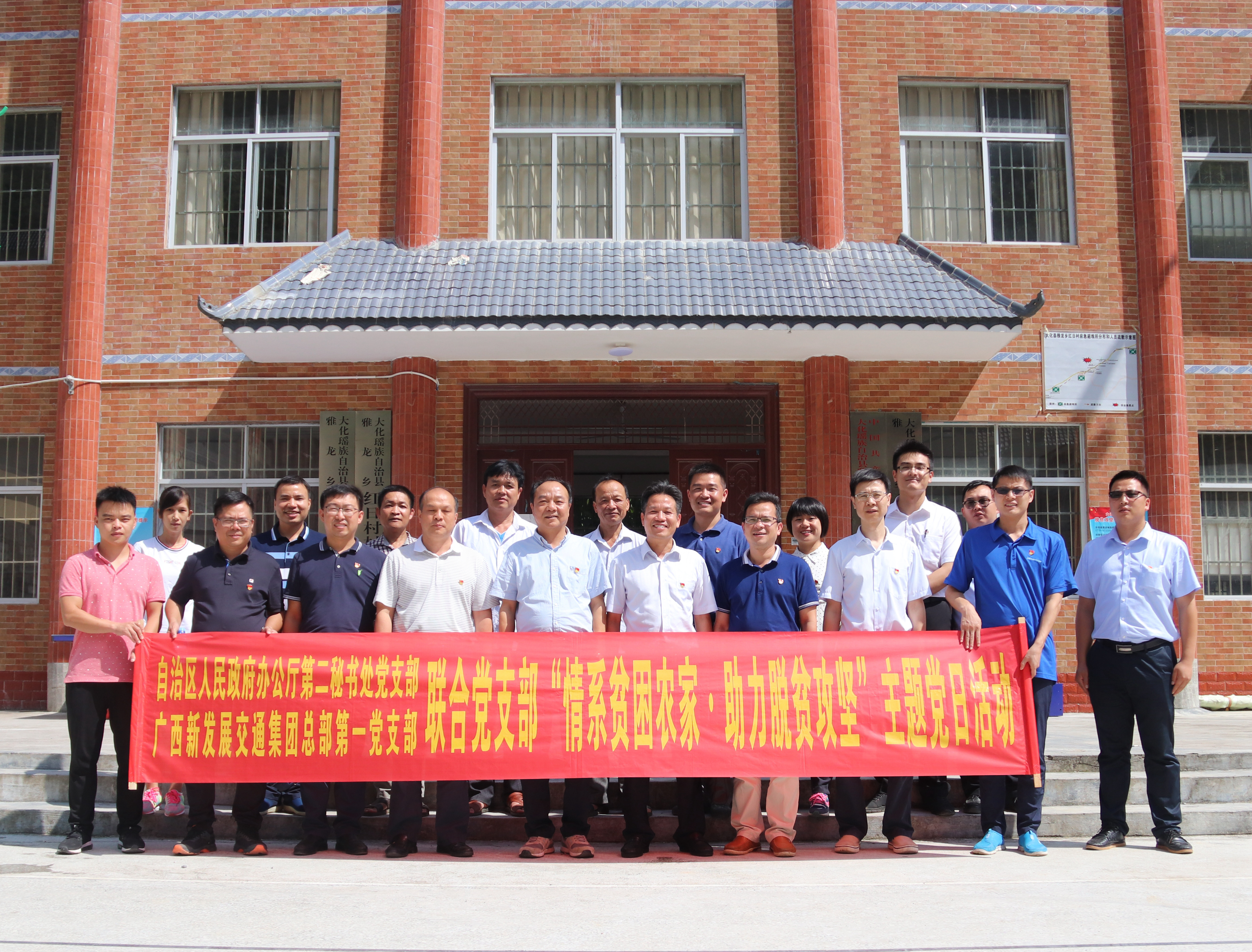 在七一建黨節(jié)到來之際,為表達自治區(qū)政府對貧困戶的關(guān)懷,激勵貧困戶燃起脫貧信心,致力脫貧,6月29日,自治區(qū)政府辦公廳第二秘書處黨支部和集團總部黨支部在自治區(qū)人民政府副秘書長黃植建,集團公司黨委書記、董事長朱堅和的帶領(lǐng)下深入大化瑤族自治縣雅龍鄉(xiāng)紅日村,對12戶貧困戶進行了走訪慰問,并舉行座談會。