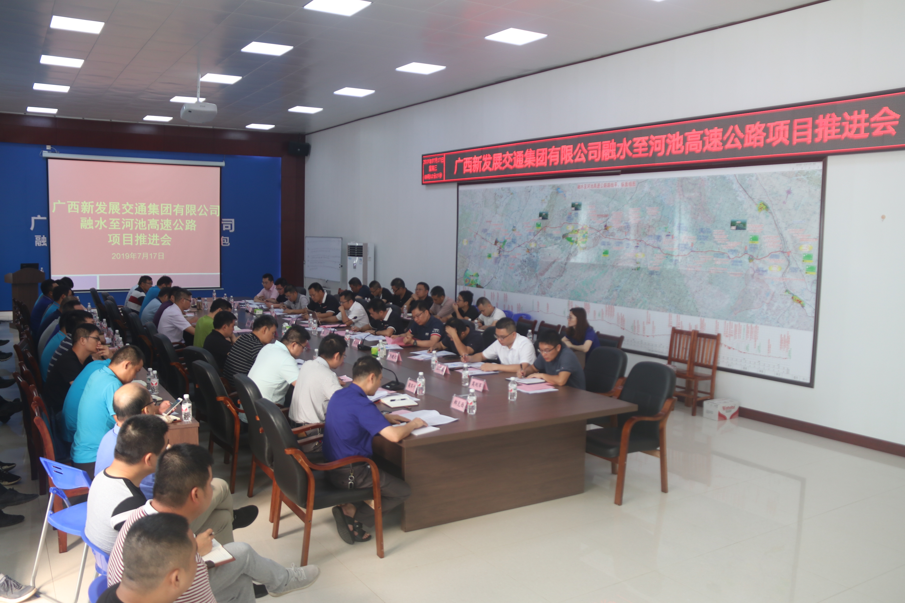 7月17日,廣西新發展交通集團融水至河池高速公路項目推進會在融河高速總承包項目經理部召開。新發展集團黨委副書記、副董事長、總經理、總工程師藍日彥,黨委副書記、董事梁波,路橋集團副總經理王鋒,路建集團副總經理李戰春,路橋集團路面分公司、長興公司,路建集團一、二公司領導及融河高速各參建分部70余人參會。會議由梁波主持。