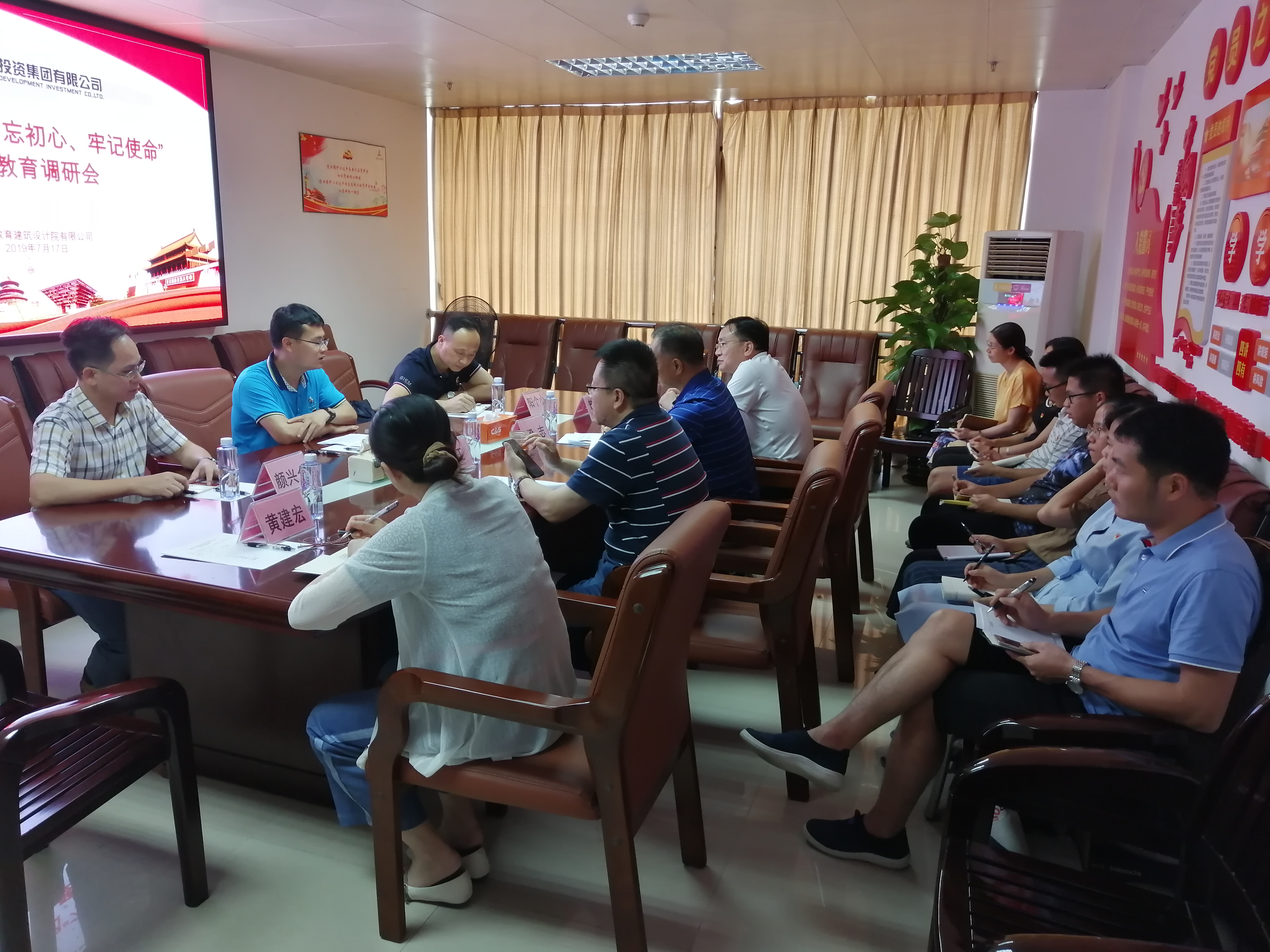 教育建筑設(shè)計(jì)院公司黨支部書記、執(zhí)行董事梁志首先介紹了公司的基本情況和發(fā)展歷程,就公司2018年及2019年上半年經(jīng)營、黨建等工作情況、存在的問題以及今后的發(fā)展思路作匯報(bào)。與會人員圍繞企業(yè)經(jīng)營管理改革創(chuàng)新和提高企業(yè)市場競爭力等主題發(fā)言討論,提出了公司經(jīng)營管理和面臨市場競爭壓力的困難以及意見建議,調(diào)研組一一記錄并現(xiàn)場給予解答。